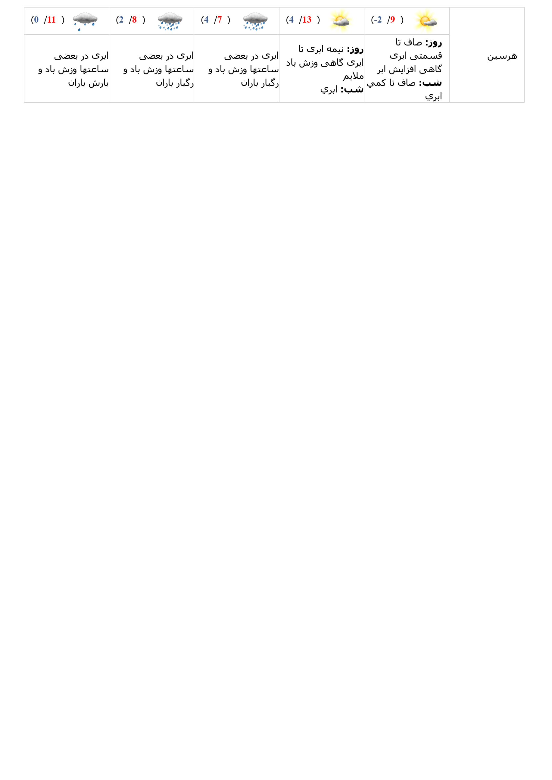 (جداول مربوط به دما و پدیدههای هواشناسی معمولاً بعد از ساعت 12 ظهر بهروز رسانی میشود)