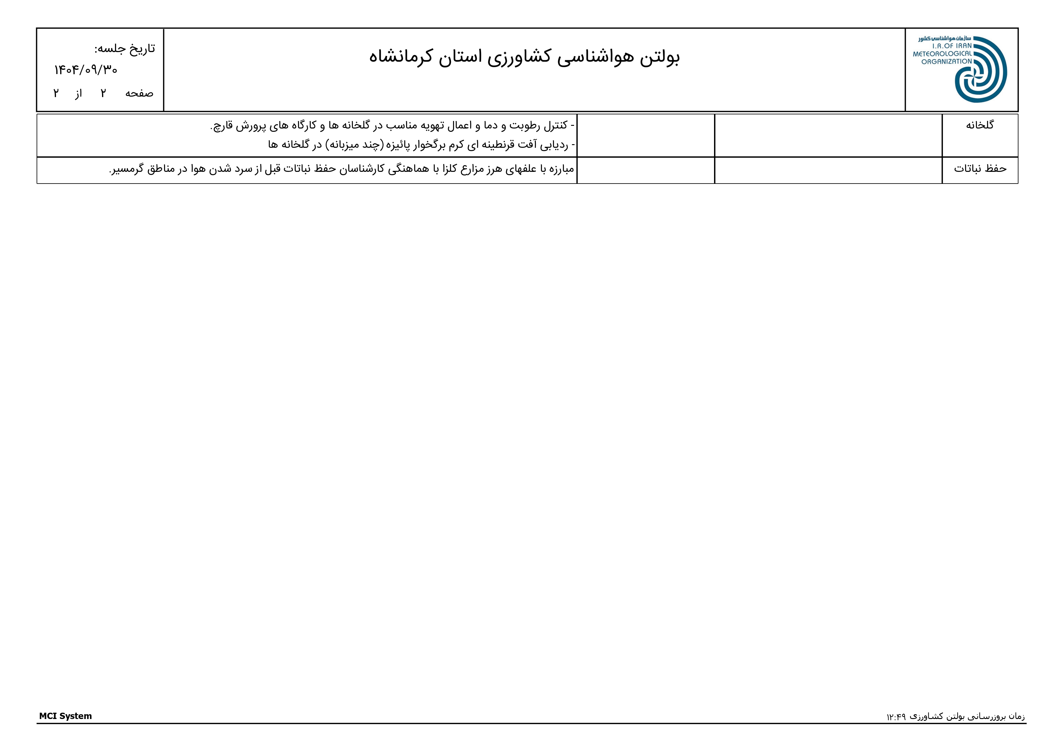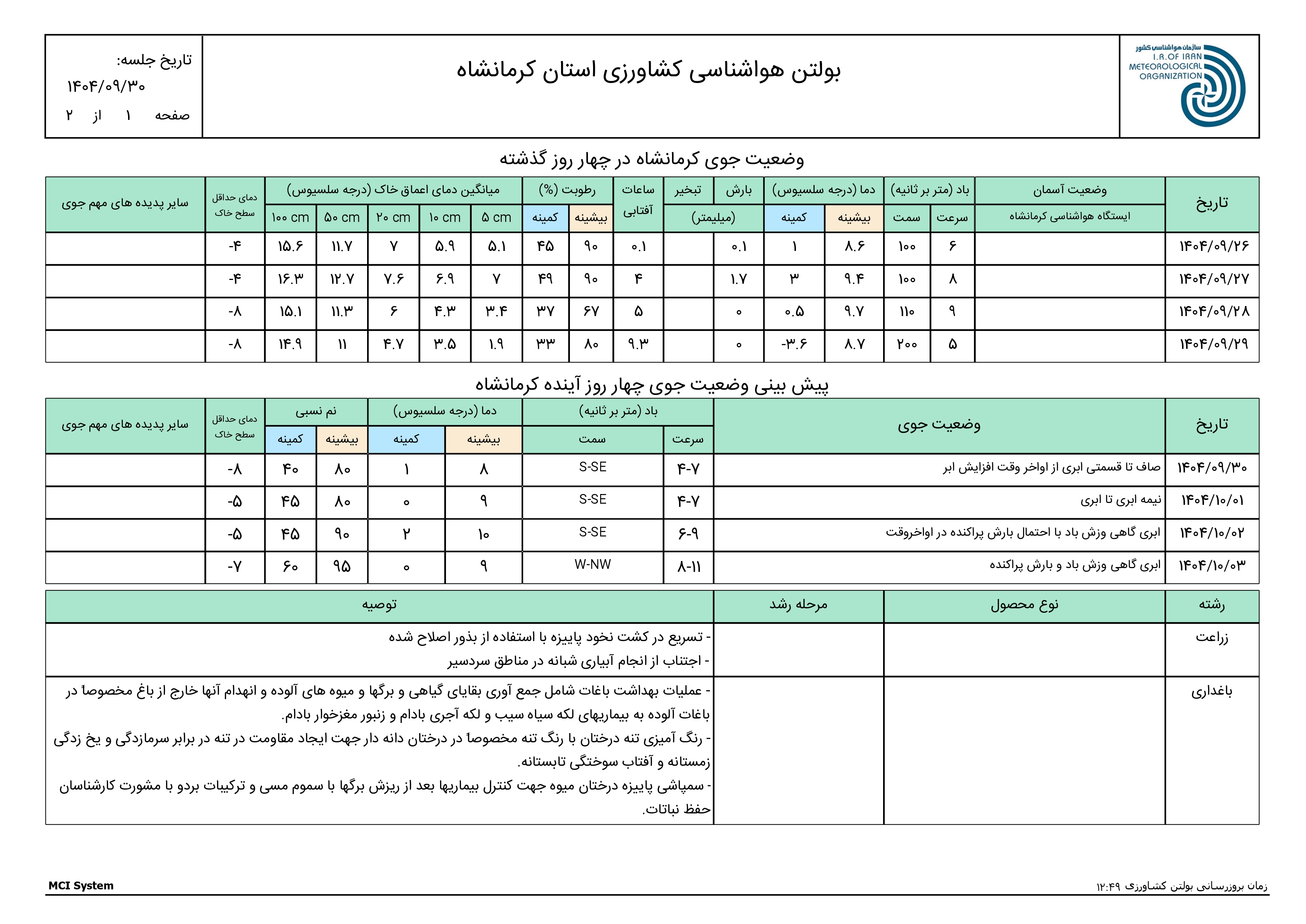 بولتن هواشناسی کشاورزی استان کرمانشاه